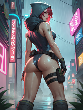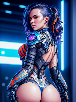 #ass #asscheeks #asscrack #blue #bluehair #crouching #cybernetic #cyborg #frombehind #futuristic #hair #neonlights #ponytail #robotic #sciencefiction #scifi #smallbreasts #squatting #thong #slimgirl #hairtied #revealingclothes #looking_to_the_side