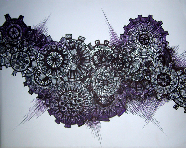 Voilà pour toi une réalisation sur le thème "rouage".J'espère que cela te convient, sinon, si tu avais une idée plus précise je peux essayer de t'en faire un autre.