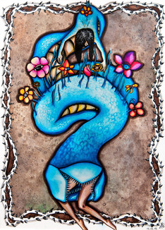 I totally agree with the idea that aliens = gods, and this was one of the idea behind this painting. God is just a generic terme to describe somebody or something dominating us, who created us, omnipresent and almighty, in front of who we are really weak and small. So everything could actually be this "god", and why not aliens!