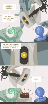 XD This comic is wonderful enough as it is. But your little comment in the author's comment box is what made me burst out laughing. I love Wheatley too!