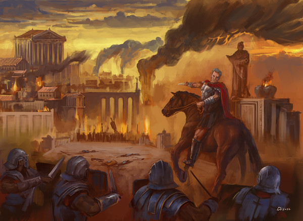 Caesar watches as a Gaul makes good on his oath. Sources agree he was heard exclaiming "I will sooner stab myself in the dick with a sheathed sword before I let the Romans onto my land".