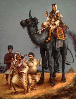 My stab at an illustration for a contest on a Polish art forum, themed "mythology". I chose Arabian, pre-Islamic myths.Sheitan was a type of Djinn, a creature of great powers and capability, able to be conned into doing favors, but also malevolent and easily annoyed when the attempts of conmen failed.