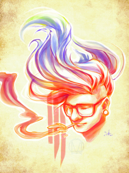 Thank you It was meant to be about a friend who helped inspire the injection of bright color into my art & life, while at the same time causing me to realize/helping me adjust to my identity without freaking at me