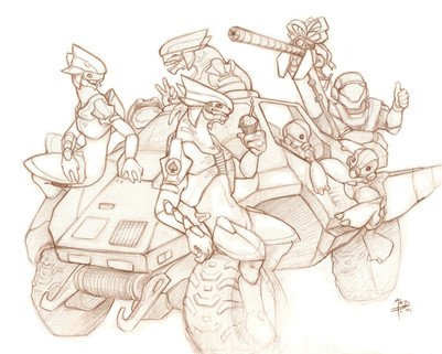 This is too cute! I love the Sarge, and Rtas of course... and MC getting loved up by a little infector is priceless! I was actually going to do something similar, but since you've done it I may not. I fell ill the last few days and haven't been able to doodle up everything I had planned, so I'll probably only manage one or two things anyway.