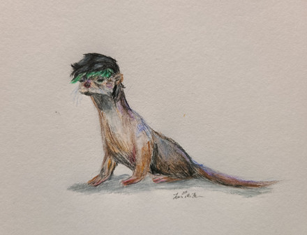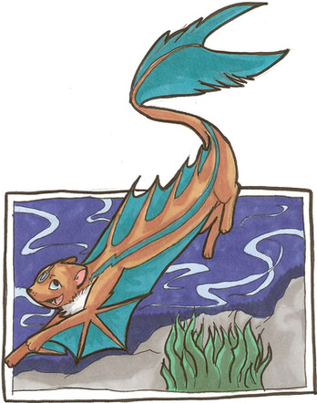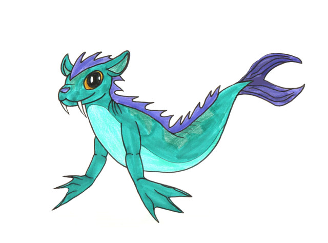 Merotters are like otters but AWESOMEFULLER because they are totally aquatic. The green thing at the base of his head isn't another fin, it's external gills (think mudkip). Merotters are like BEINGS OF GOOD? so I have started thanking merotters for smiling upon my tests and things because they are helpful 8D; especially the king of the merotters, who I will have to design properly at some point.
