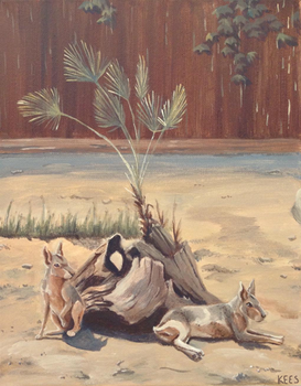 I can definitely see your argument--it's hard to discern details in old taxidermy work. The mountain hare is certainly a lot cuter than the lankier european hare, and the added color changing is certainly a plus. I've definitely sketched a few different regional variations since doing this one (pygmy rabbit + ruffed grouse is very small, very round, and very angry) so there's certainly nothing stopping me from doing another version here that gets to be all white! Much better camouflage, after all.