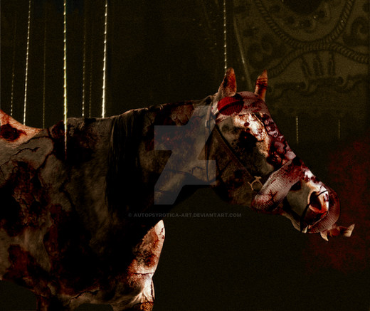 #blood #carousel #creepy #gore #horse #rearing