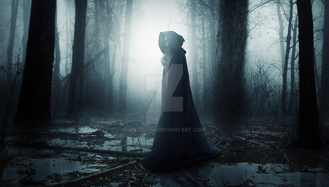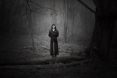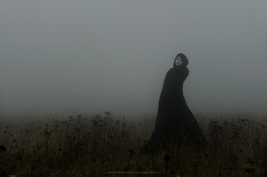 Ominous!Β Nothing like a fog enshrouded forest to put you on edge,Β She reminds me of the Woman in Black!Β Great spooky photo, just in time for October!Β Β Β Β