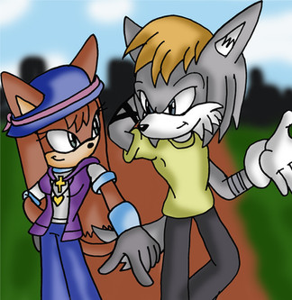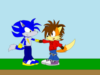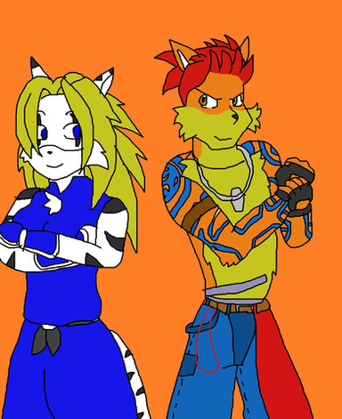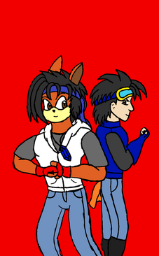 Here is a late b-day pic for of Hyrit and Euan showing that they are friendly rivals, but will have their moments in trying to show who's the strongest.This pic also shows Euan's new look (since I wanna move him away from looking like a Sonic character). He has new clothing (similar to a pic that drew back on one of me b-day) as well as the removal of the EK medalion. He still wears the same shoes though.
