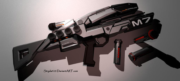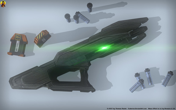 Just a showcase. The Turian Phaeston Assault Rifle from the Mass Effect games.Named after a turian spirit of creation, the Phaeston was engineered to provide the best possible balance between accuracy and firepower in a machine gun. Each shot is tempered by kickback dampeners inside the shoulder stock, which lets the Phaeston pack more punch than other weapons its size without sacrificing precision. Its fully automatic fire and relatively light weight has turned the Phaeston into the turian infantry's primary go-to weapon.