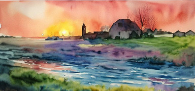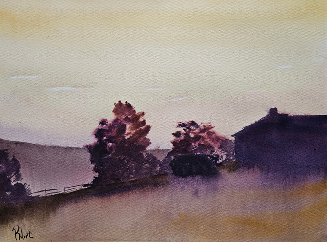 #watercolour #traditionalart #landscapepainting #morninglight #skyscape #watercolorpainting #foggylandscape #artworkpainting