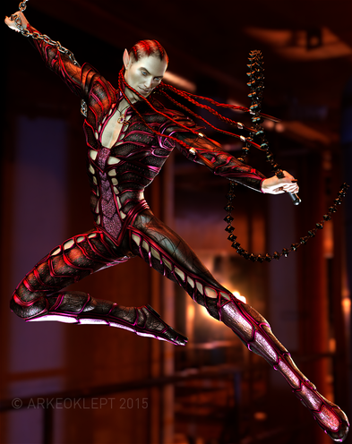 And those muscles tell me he's very trained and good at "kill and go"...impressive picture, very very impressive, and the metallic-red hair and nails are a very special touch.