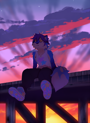 LOVELY piece as well! The background gives it such a chill atmosphere and the expression + anatomy is on top again as well