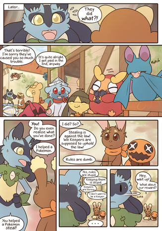 The last page, apparently this Fennekin and Riolu are raising this Nidoran.