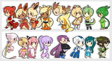 I love how all the chibis represent their personality in the pokemon worldΒ