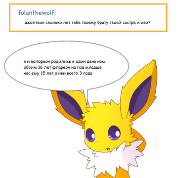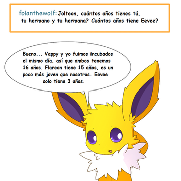 aww love it, i like how jolteon and his brother and sister are teenagers and evee is a wee kid, love it especially that jolteon is the same age as me, jolteon is mt favourite character out the comic, because we have stuff income makes me happy