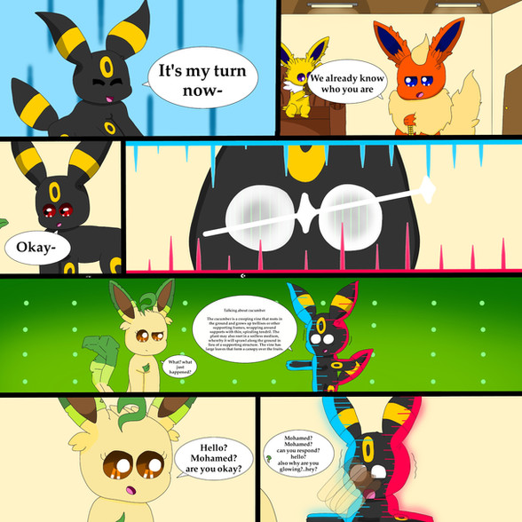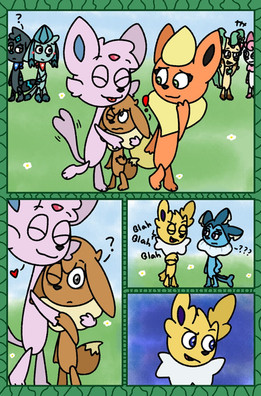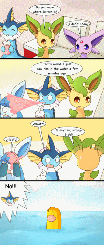 Then there could be a part 3 where they snap out of it and Glaceon hits Jolteon (again), or another shipping pair could be hypnotized and kiss as well.