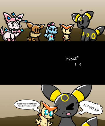 *turns into umbreon and kicks snivy away while covering my eyes*