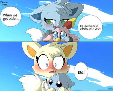 Sharing a pocky stick.Side Note: Nose touching is considered kissing by Felicoes.