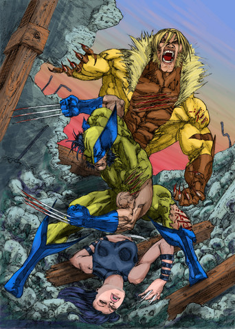 Wonderful work! Nice coloring style. I like the colors you chose and the way you did the shading. It's an awesome drawing, too, so it must have been a blast to work with.