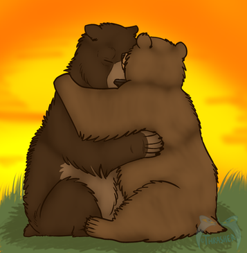 My first time drawing bears! Commission from George Samartzis . 'Tis his bear fursona, Toast, and BearPaw.Colored with colored pencils on 11 x 8 1/2 in sketch paper.