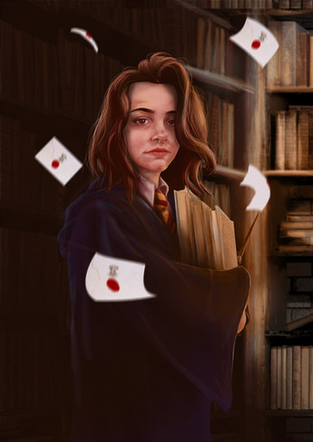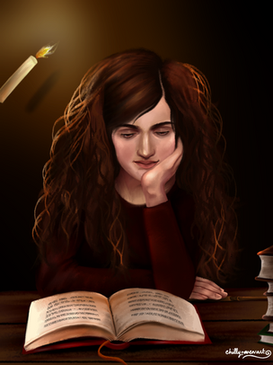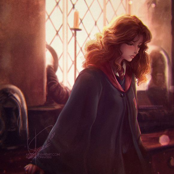 This is awesome, lightning is great, especially as it comes from her wand in the hand, and the content of the books are a great touch, like she's been up late reading about powerful magic to use in their fight against evil.