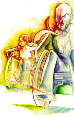 Yeah, I wanted him to be a bit leaner in this picture. More of an in between, kind of like the actor Kevin Durand. There's no denying he's a big dude, but he's not hulk huge. It kind of makes more sense for the kind of fighting he does. I liked the eye as well. I used a flat brush to do dry brush for most of the bg. I liked how it came out.