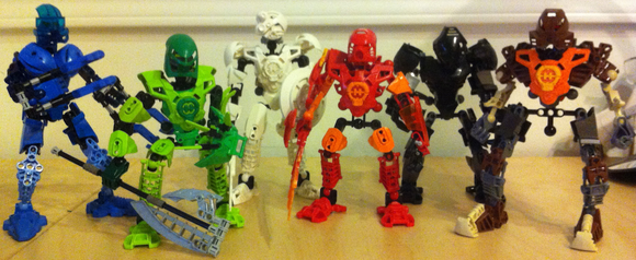 This is my version of what I think the Toa Nui might look like. I think the Toa Nui would look more like a fusion of Wairuha and Akamai than all the Toa Mata directly. Pieces were only used from the Toa Mata set.