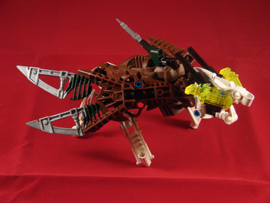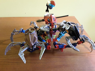 Takua riding the Metru Mantis.An attempt to recreate the metru mantis from the book of Rahi.