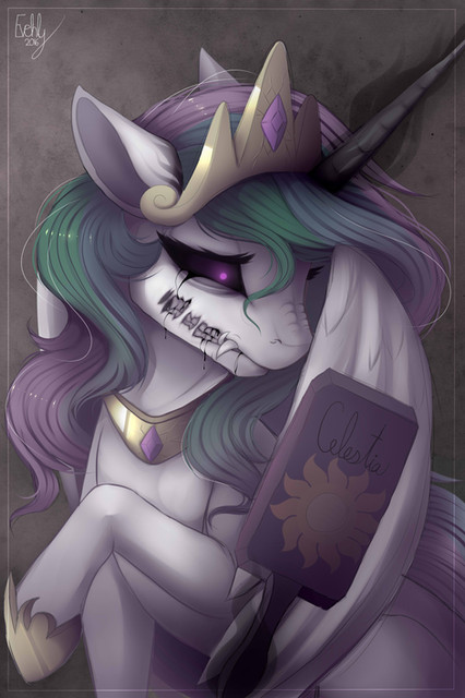 Who would've thought that Celestia's evil counterpart would surpass Nightmare Moon as the most terrifying of the alicorn princesses.Β Makes me wonder what Cadence's evil form would be like.
