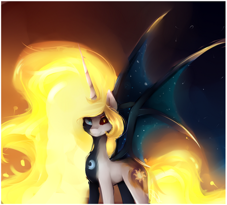 I sketched a little somethin in my notebook during one of my classes and I thought I'd go ahead and make it a digital piece.For Celestia I was initially going to design her "by the book" as Daybreaker from season 7, but I ended up mashing some of Daybreaker's design with Nightmare Star's from the Enterplay TCG, since I really like the look of both variants. So is it Daybreaker? Is it Nightmare Star? WhY NoT bOtH?