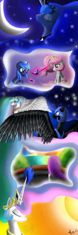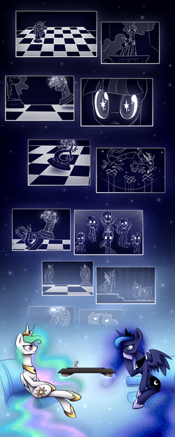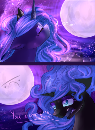 Princess Luna: I told Celestia, not to play with my Dark Magic books, and stuff, but did she ever listen to me?! Nooooooo!!!