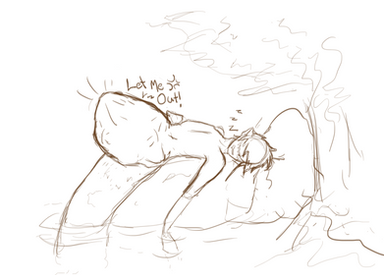 My character Lowell is getting a belly rub from the inside from her character Natalee.