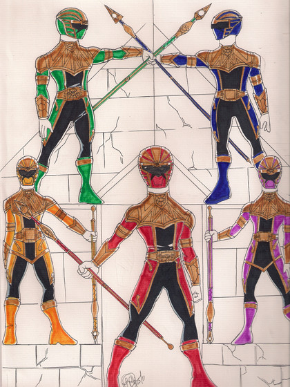 Finally done. All revision character concept of Pandawa Rangers. Based from wayang (Indonesian traditional puppet) version of Pandawa Brothers from epic story Mahabharata.Maybe I'll added the sixth ranger based from Gatotkaca character and power-up mode based from Gatotkaca's armor