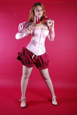 This is my first pin up style of photos. I created my corset, which was inspired from a vintage dress that I saw and loved. I also have had the pink and black fabric for awhile to as I thought it was amazing when I saw it and bought some because it is a discontinued fabric. I have many more pictures from this shoot but this is the first one that I finished editing.This is NOT stock.....I just want to make sure that is clear.
