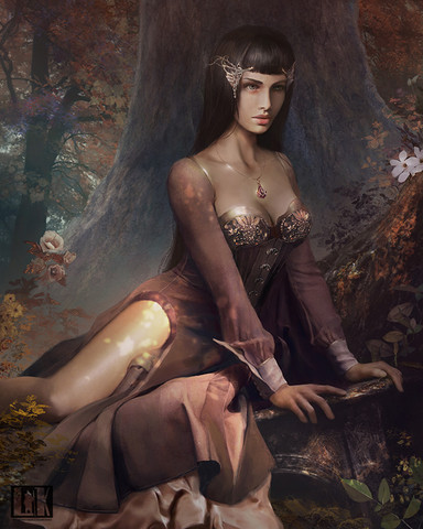 I really like this art. This lady from your art is amazing. I loved how her head decoration, her eyes, and her lip color match all together creating a calm balance (I also feel like her face expression helps here). I am also impressed by the falcon. The falcon's feather looks so soft and the lighting on its chest part draws my attention. I really enjoyed your art which is full of inspiration.