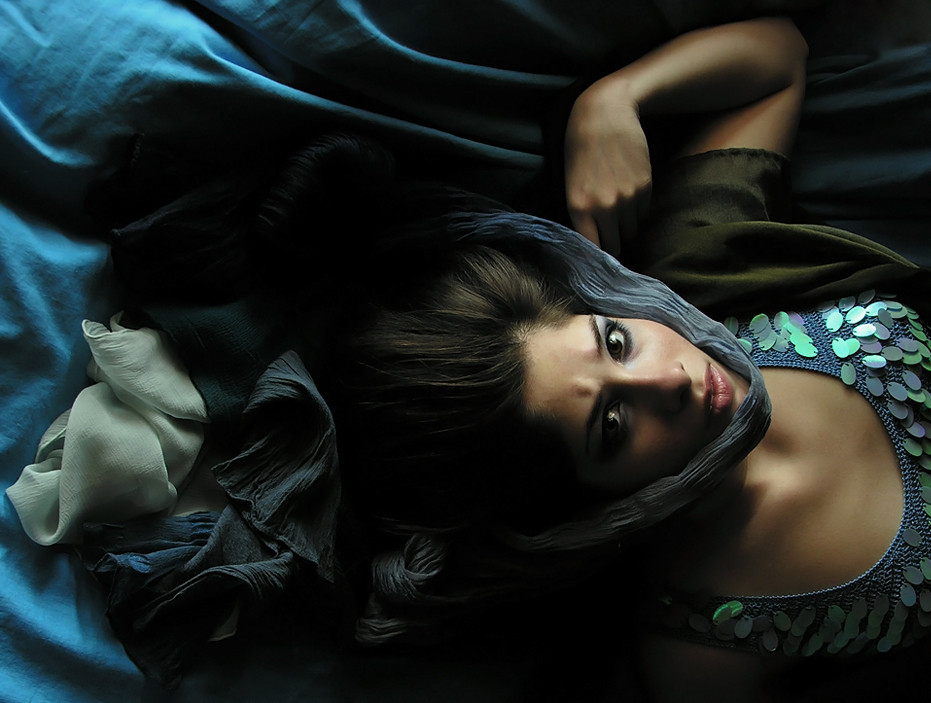 molto interessante questa esplorazione nei colori, qui ilblu ti avvolge bene, tu sembri un po' spevantata perΓ², avrei preferito uno sguardo piΓΉ caldo...ciaoooo