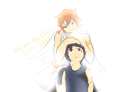KYAAA THIS IS TOO CUTE!!! XDDD Awww Pit!! <3 man, this is perfect, I love their expressions and Pits wing just trying to cover himself XD this is the best. Love how you drew it! ^-^ nice job! ~lululevy