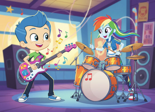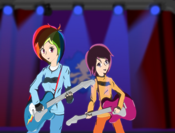 Some cuties with keytarsoriginal screenshots from both shows are from the episodes: EQG Raibow Rocks Shorts(mlp) & Silent Punch, Deadly Punch(rc9gn)
