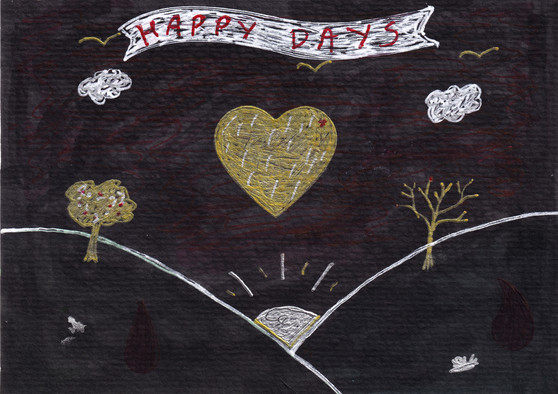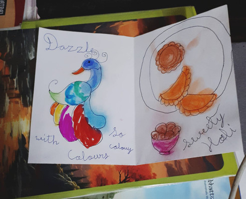 I never have to buy cards for family and friends because I always draw them myself. A "get well soon" card and a birthday card for my Mom, who like donuts and train crashes.