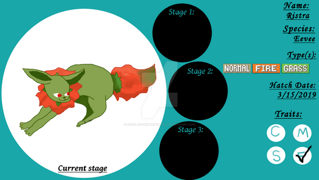 Lives now with Caldera-RanchTrainer Log: I was given a Roulette egg, and out comes an Eevee who doesn't seem to belong in this dimension