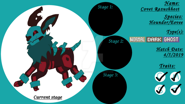 He's friends with 2 other morph/shiny Eevee that have yet to be reffed, and they get into all sorts of trouble. He plans on becoming an Umbreon on day.