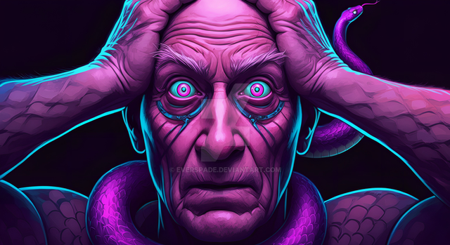 The overall portrait captures the essence of "Soulgnasher," an otherworldly and sinister being that embodies the fears of the unknown and the inexorable pull of the afterlife.