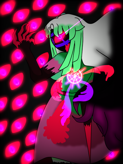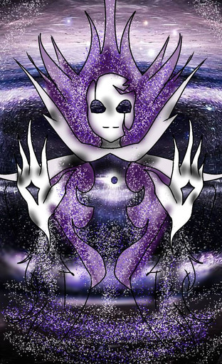 As all of them convulsed in pain- a sudden and brief image was sent through all of their minds. The vision was hazy and distorted at first...but soon enough a face came into view. It was strangely beautiful, feminine even, yet was completely void of all expression- almost as if it were sleeping. The entity's skin tone was a sickly gray-and it was noticeable that four blackened streaks ran down its cheeks from what could be assumed were its eyes. These streaks seemed to color over beautifully intricate tattoos that wove their way up her neck and right cheek. Slowly, each of the four eyes opened to reveal white soulless orbs that conveyed a sense of comfort and familiarity to the two demons - and a look of utter disgust towards both Cell and Samuel that brought about a sense of unease to the two amidst their suffering.
