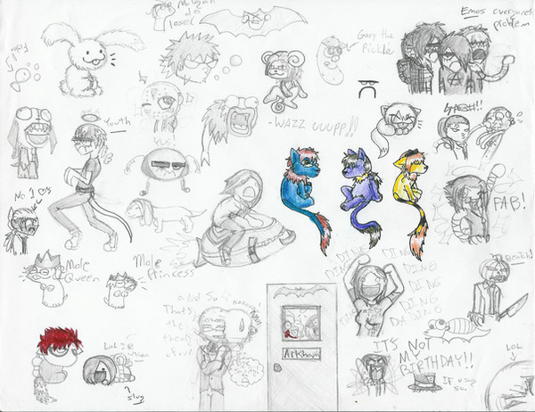 All the madness from when i was livesteaming earlier and practicing my chibi's x.xThere's even chibi me~ (long brown hair and freckles) Before anyone asks, Yes I'm pretty dang short for my age ;;