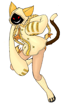 so apparantly yumeii wants to make cosplay outfits for Taokaka (pictured left). lots of them. so he asked us what colors we'd like to see +_+here's mine (right)