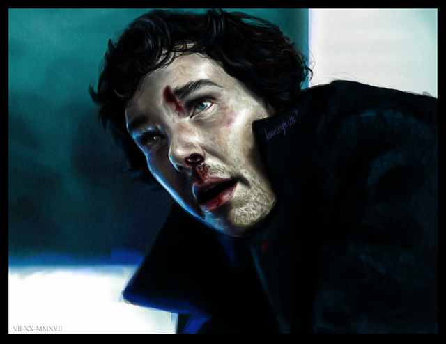 Your art is sop brilliant! Please - never stop. This looks very painful through, which isa strange, because none of those things are really cutting him, but just the fact that they are so close to his face makes me really uneasy. Sherlock looks very sad too. I love his face through.Β