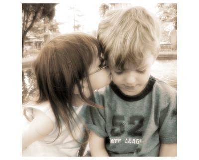 A girl gives a kiss to a little boy...it's very nice i think.The boy is like indifferent, but i'm sure this kiss is touching him deeply!!
