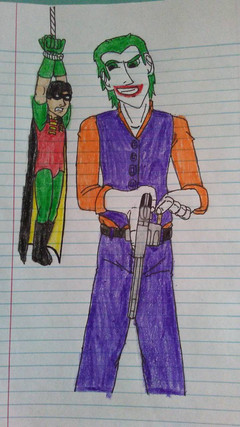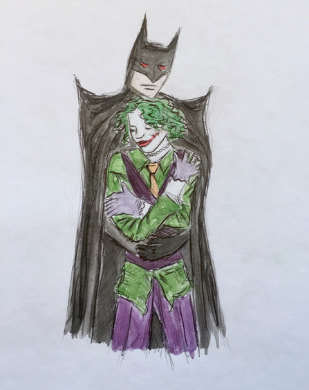 Just a quick drawing I did :3 I absolutely love how Joker came out!~ Batman, not so much. I inked the eyes too much XDDo you see what's on Joker's finger?~