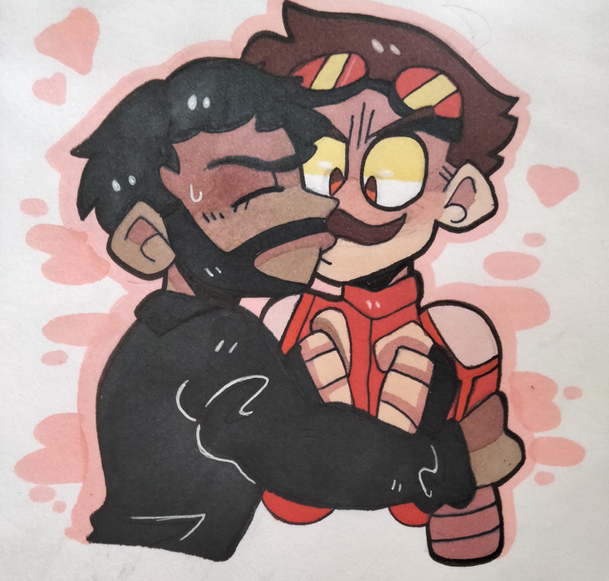 Oh and by the way, if you see any red outlines/particles throughout the picture, that's entirely my fault. I accidentally drew the lineart for the top half of the picture on the sketch layer, and couldn't undo it all. So I had to trace over it with red and then fill it in to the best of my ability with black. My bad!